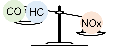 CO・HCを減らしたい場合は燃焼温度を上げる必要がある為にNOxが増えます。